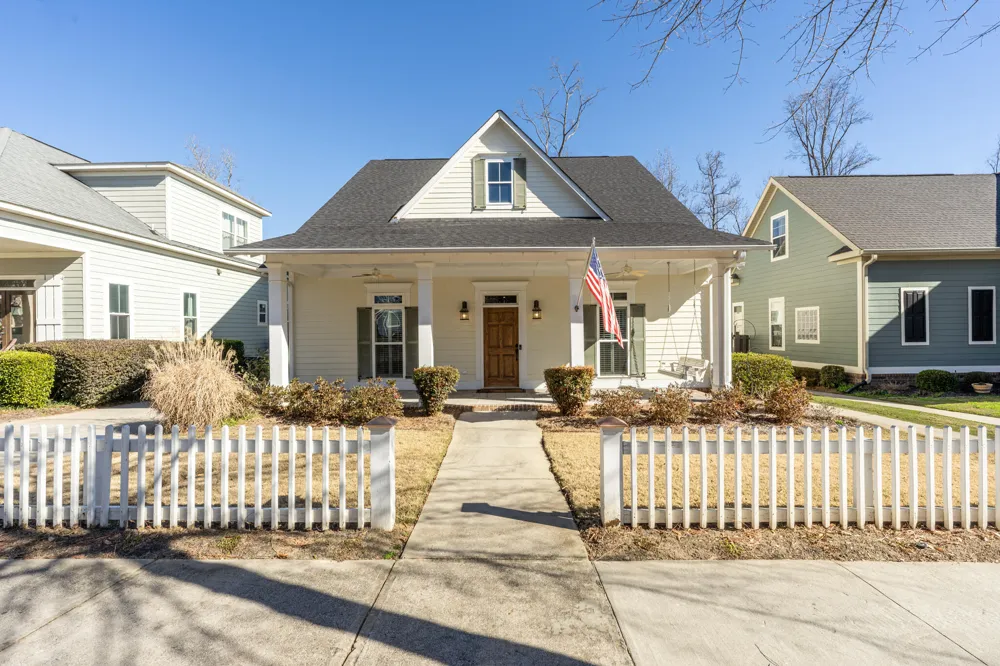 Welcome to 960 Mitchell Lane in the Mitchell Park section of Riverwood Plantation, set on a picturesque, tree-lined street known for sidewalks, front-porch living, and a true neighborhood feel. This 3-bedroom, 2-bath ranch offers approximately 1,876 square feet (built in 2007) with a functional layout that includes a living room, dining room, kitchen, dedicated laundry room, and an attached 2-car garage. Inside, the great room features a vaulted ceiling, recessed lighting, and a fireplace with a substantial mantel and surround, creating a natural focal point. Hardwood flooring runs through the main living areas and pairs beautifully with detailed trim work, including wide cased openings, crown molding, and custom built-ins. The kitchen is designed for both everyday use and entertaining, featuring abundant cabinetry, granite countertops, a center island, and a bar-height serving counter with pendant lighting. Stainless appliances are included (dishwasher, microwave, range/oven, refrigerator), and under-cabinet lighting adds both function and warmth. The dining area includes impressive built-in shelving and a long granite-topped serving station that adds storage and makes hosting easy. The owner's suite bath offers a spacious feel with dual vanities, an oversized soaking tub, and classic wainscoting details. Plantation shutters and generous natural light add to the home's clean, move-in-ready presentation. Out back, enjoy a yard that backs up to green space/wooded buffer, giving you a more private setting with a peaceful view beyond the fence line. Riverwood Plantation is a master planned community with lifestyle amenities including a Low Country-style clubhouse, junior Olympic swimming pool, barn pavilion, nature trails, fishing, and Champions Retreat - a private golf club with memberships available. Nearby schools include Greenbrier Elementary, Greenbrier Middle, and Greenbrier High.